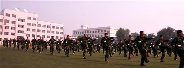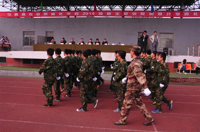 全體新生身著軍訓(xùn)服,排成整齊的方陣,向迎來(lái)的軍旗行注目禮。高春寶校長(zhǎng)、孫常青書(shū)記陪同山西省農(nóng)機(jī)局人事教育處李新民副處長(zhǎng)從主席臺(tái)走下來(lái),檢閱新生方陣。軍訓(xùn)連隊(duì)進(jìn)行了分列式、綜合科目表演,最后幾百人組成軍體拳方陣,掀起了現(xiàn)代學(xué)子舍我其誰(shuí)的雄壯氣勢(shì)。