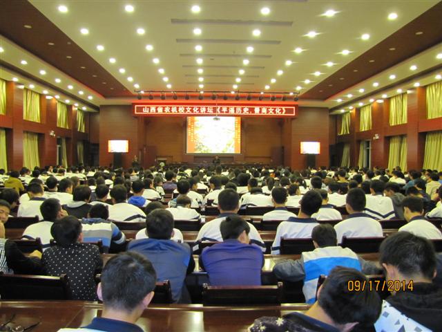 開設文化講壇,舉辦文化講座,是山西省農業(yè)機械化學校開展文化教育系列活動的舉措之一。通過文化教育提升學生品味,提高學生素質,是山西省農業(yè)機械化學校后示范建設的一個重要方面。