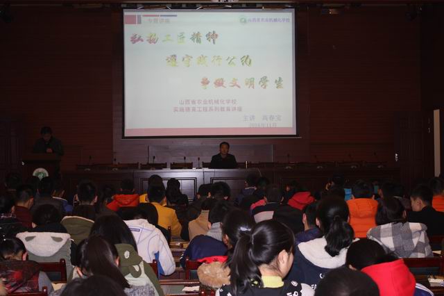 高春寶校長(zhǎng)以職教基層工作者的視角,結(jié)合自己的人生經(jīng)歷,通過(guò)大量的真實(shí)事例、深厚的歷史知識(shí)、豐富的人生哲理和生動(dòng)通俗的語(yǔ)言為全校一千多名師生解讀了《公約》的八條內(nèi)容,介紹了十種解決問題的方法,號(hào)召全體學(xué)子,弘揚(yáng)工匠精神,學(xué)習(xí)踐行公約,爭(zhēng)做文明學(xué)生。