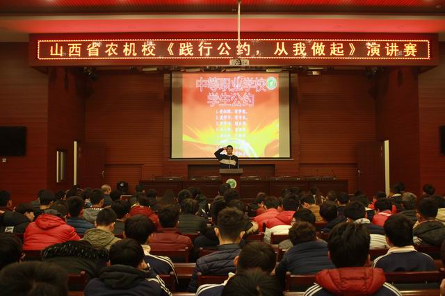 為了深入踐行《中等職業(yè)學校學生公約》,進一步引導全校學生樹立正確的社會主義核心價值觀,加強我校學生的文明風氣,提高我校學生的綜合素質,展現(xiàn)我校學子的精神風貌。經過充分籌備,由校團委、學生處聯(lián)合舉辦的“踐行公約、從我做起”演講賽于2016年12月27日晚7:30在我校多功能廳拉開帷幕。