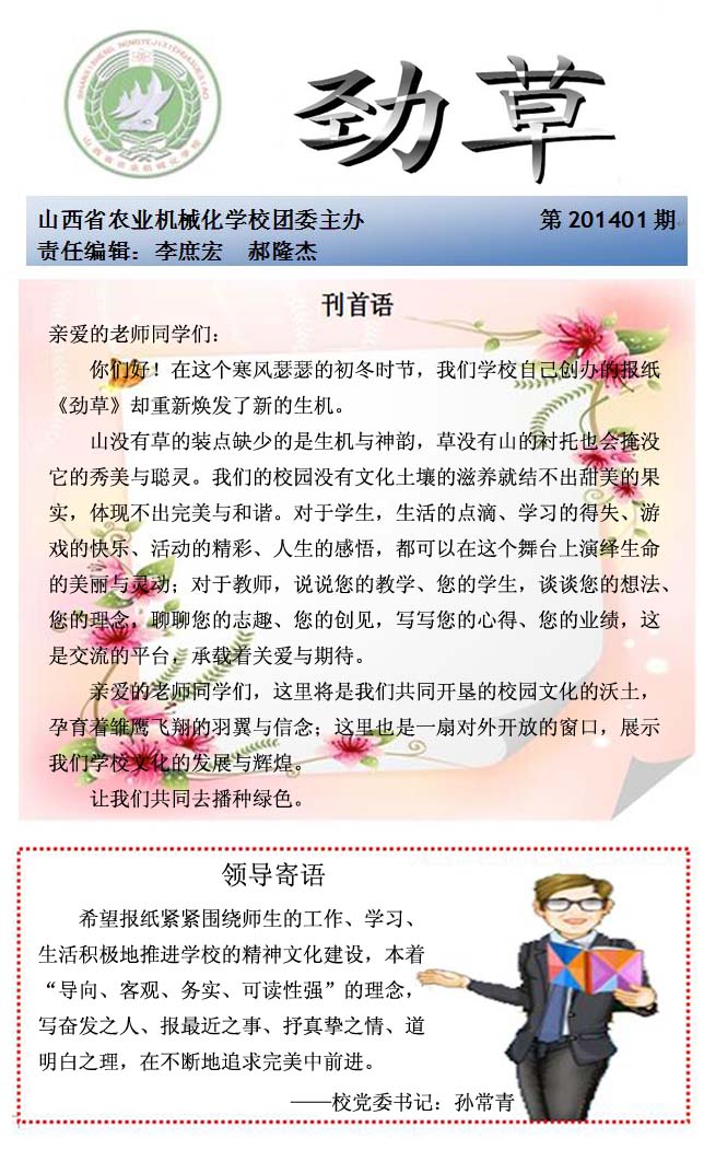 整潔優(yōu)美、文明有序的學(xué)習(xí)環(huán)境,既是一個(gè)學(xué)校物質(zhì)文明和精神文明的標(biāo)志,也是學(xué)校的“名片”和資本,代表著一個(gè)學(xué)校的發(fā)展水平和文明程度。 開(kāi)學(xué)以來(lái),在全校師生的共同努力和辛勤勞動(dòng)下,學(xué)校的校園環(huán)境、教學(xué)秩序井然有序,呈現(xiàn)了良好的發(fā)展勢(shì)頭,但我們也不無(wú)遺憾地看到身邊還存在很多不文明行為、很多陋習(xí)需要摒棄:如有的圖省事方便,亂扔紙屑、包裝袋、礦泉水瓶,亂到垃圾,有的在課桌上、在宿舍里亂貼亂畫(huà),有的張口污言穢語(yǔ),同學(xué)之間拳腳相加,同學(xué)視而不見(jiàn),有的爬圍墻,桌凳、開(kāi)關(guān)、玻璃時(shí)有破壞,課間高聲喧嘩等等。這些現(xiàn)象好象是無(wú)關(guān)緊要的事,但實(shí)實(shí)在在地反映了一個(gè)人的素養(yǎng)。日常生活中這些種種不和諧音符,在倡導(dǎo)社會(huì)主義精神文明建設(shè)的今天,我們每一個(gè)同學(xué)應(yīng)該向這些不文明行為告別。在當(dāng)今全社會(huì)大力提倡公民道德規(guī)范,注重道德修養(yǎng)的氛圍中,在我們與時(shí)俱進(jìn)的生活、工作中,更不要忘記養(yǎng)成良好的日常行為習(xí)慣,做一名合格的學(xué)生。 一個(gè)人的行為習(xí)慣,就是其品德、人格的體現(xiàn);國(guó)民的行為習(xí)慣,就是一個(gè)國(guó)家道德水準(zhǔn)的體現(xiàn)。我國(guó)偉大教育家葉圣陶也曾經(jīng)指出:“教育就是培養(yǎng)習(xí)慣?!睂?duì)學(xué)生良好習(xí)慣的培養(yǎng),一直是古往今來(lái)各國(guó)教育的一個(gè)重要內(nèi)容對(duì)于學(xué)生而言,應(yīng)重點(diǎn)養(yǎng)成兩個(gè)好習(xí)慣:一是誠(chéng)信不欺的習(xí)慣,一是遵守規(guī)則的習(xí)慣。 校園文明是學(xué)校校風(fēng)、學(xué)風(fēng)建設(shè)的重要組成部分,是學(xué)生良好精神風(fēng)貌的集中體現(xiàn)。為了進(jìn)一步加強(qiáng)校園文明建設(shè),摒棄目前校園內(nèi)存在的一些不文明現(xiàn)象,培養(yǎng)學(xué)生基礎(chǔ)文明和良好的行為習(xí)慣,營(yíng)造文明健康、積極向上的學(xué)習(xí)、生活環(huán)境,促進(jìn)學(xué)校校風(fēng)、學(xué)風(fēng)建設(shè),校團(tuán)委向全校學(xué)生發(fā)出倡議: 一、自覺(jué)遵守課堂紀(jì)律,不遲到,不早退,不隨意曠課。 二、不攜帶早餐、飲料、零食等進(jìn)入教學(xué)區(qū)域。 三、不在教學(xué)樓、實(shí)訓(xùn)樓、宿舍等公眾場(chǎng)合吸煙。 四、男女交往得體,舉止文明、言行得當(dāng)。 五、未經(jīng)批準(zhǔn),不在校園內(nèi)進(jìn)行商品推銷(xiāo)。 六、不講臟話(huà),注意文明禮儀。 七、以校為家,愛(ài)護(hù)公共設(shè)施,拒絕課桌文化。 八、文明上網(wǎng),維護(hù)網(wǎng)絡(luò)安全。 九、養(yǎng)成良好的生活習(xí)慣,按時(shí)熄燈、準(zhǔn)時(shí)就寢。 十、遵紀(jì)守法,不做違反校規(guī)校紀(jì)和違法犯罪的事情。 習(xí)慣成自然,從小事做起,必能成大氣候。我們不經(jīng)意間的一個(gè)動(dòng)作,往往造就一種習(xí)慣;一種習(xí)慣,往往造就一種性格;一種性格,往往造就一種命運(yùn)。現(xiàn)在不少企業(yè)流傳這樣一句話(huà): “有才無(wú)德,堅(jiān)決不用”。 如果我們不在此時(shí),抓好自身的道德素質(zhì)建設(shè),那我們縱然擁有了豐富的文化知識(shí),于人于己于社會(huì)又有何用呢?所以,我們應(yīng)該先成人,后成材,不要做一部單純掌握一些知識(shí)技能的機(jī)器,而要成為一個(gè)身心都和諧發(fā)展的人。因此,同學(xué)們,千萬(wàn)不要把文明行為習(xí)慣看作小事。營(yíng)造文明健康,和諧溫馨的美好校園,需要你、我、他的共同努力。每個(gè)人的舉手投足之間都傳遞著豐富的文明信息,讓我們以積極認(rèn)真的態(tài)度參加到“凈化校園,摒棄陋習(xí)”系列活動(dòng)中來(lái),從現(xiàn)在做起,從自己做起,從點(diǎn)點(diǎn)滴滴的小事做起,養(yǎng)成良好的文明習(xí)慣,人人爭(zhēng)當(dāng)文明學(xué)生。 校團(tuán)委 |