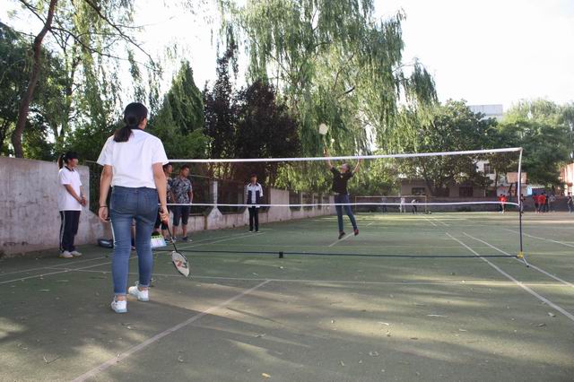 籃球場上同學(xué)們奮力拼搏,齊心協(xié)力。帶球過人、突破上籃、搶籃板、三分遠投、穩(wěn)定罰球各種精彩場面讓在場觀眾掌聲不斷,巾幗不讓須眉,女籃師生對抗賽更將籃球場上的氣氛推向高潮。小小乒乓球桌上你一來我一往,只見球的路線由曲變直,再由直變曲,你扣殺我還擊,一個個刁鉆的角度,一道精美的弧線,一板兇狠的扣殺,無不顯示著參賽隊員們的實力和智慧。羽毛球選手們個個卯足了勁揮汗甩拍,使得輕盈的羽毛球時而勁急時而翩然,不停地在空中回旋飛舞吸引了全場觀眾的視線,觀戰(zhàn)的人們也為緊張的氣氛所感染。