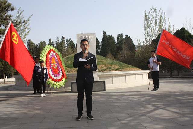 在劉胡蘭烈士墓前,全體師生肅立,向革命烈士墓敬獻(xiàn)花圈,鞠躬并默哀,青年教師代表孟成成致獻(xiàn)詞。全體師生充滿激情地重溫入團(tuán)誓詞:“我志愿加入中國共產(chǎn)主義青年團(tuán),堅(jiān)決擁護(hù)中國共產(chǎn)黨的領(lǐng)導(dǎo)……”激昂的誓言在革命烈士紀(jì)念碑前回蕩,訴說著每一名中國共青團(tuán)團(tuán)員的忠誠和責(zé)任。