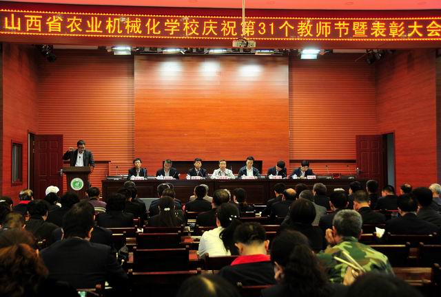 2015年9月10日15時(shí),山西省農(nóng)業(yè)機(jī)械化學(xué)校全體教職工與學(xué)生代表會(huì)集多功能大廳,隆重舉行了慶祝第31個(gè)教師節(jié)暨先進(jìn)集體和個(gè)人表彰大會(huì)。山西省農(nóng)機(jī)局人事教育處處長(zhǎng)韓永英和局直機(jī)關(guān)黨委專職副書記尚志剛、學(xué)校老領(lǐng)導(dǎo)和老教師代表應(yīng)邀參加了大會(huì)。
