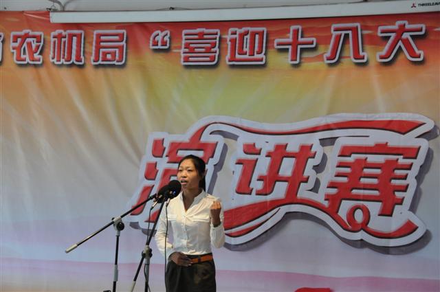 9月10日上午,由省農(nóng)機局組織的局直系統(tǒng)職工“喜迎十八大,爭創(chuàng)新業(yè)績”主題演講賽在我校隆重舉行,省農(nóng)機局黨組書記、局長王立偉、紀檢組長、機關(guān)黨委書記候振全、黨委副書記王五明、人事教育處處長韓永英、紀檢副書記兼監(jiān)察室主任賈貴財及局直各單位主要領(lǐng)導親臨比賽現(xiàn)場,我校近300名師生觀看了比賽。