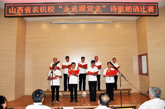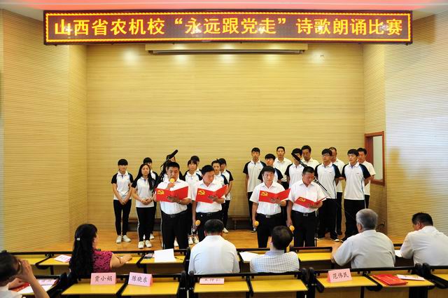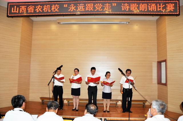 6月28日下午,學(xué)校黨委在東階梯教室舉行了慶七一“永遠(yuǎn)跟黨走”詩(shī)歌朗誦比賽。學(xué)校黨政領(lǐng)導(dǎo)、全體黨員、中層干部以及入黨積極分子觀看了比賽。