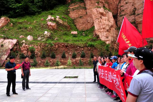 在黃崖洞紀念碑前,全體黨員和預備黨員面對鮮紅的黨旗莊嚴宣誓,鏗鏘有力的誓言,久久回蕩在群山峻嶺。受表彰的先進黨支部和優(yōu)秀共產黨員、優(yōu)秀黨務工作者,雙手慎重接過獎牌、證書,心中默默許下對黨的承諾。李晉書記慷慨激昂的講話,使全體黨員倍感肩負的重任,增添了奮力爭先的勇氣。最后的大合唱《沒有共產黨就沒有新中國》,表達了全體黨員對黨的熱愛和永遠跟黨走的堅定信念。